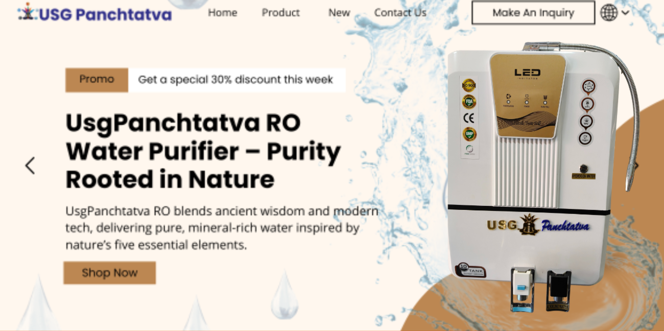 At USG Panchtatva Store, we are committed to bringing purity, health, and trust into your home through our premium RO water filtration solutions. Born from the philosophy of the five essential elements — Earth, Water, Fire, Air, and Space — our mission is to restore balance and wellness through one of life’s most vital elements: clean and safe drinking water.